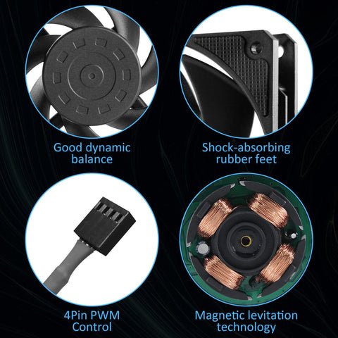 - Magnetic Levitation FDB: New magnetic levitation hydraulic bearing,maximize the airflow (around 106cfm) but minimize the noise(around 40dBA),very excellent sound quality.