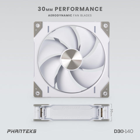 - The D-RGB lighting is integrated and visible from all sides of the D30-140 fan. The blades reflect the light coming from the Halos lighting ring inside the frame. Compatible with Digital-RGB equipped motherboards and Phanteks Digital-RGB products.