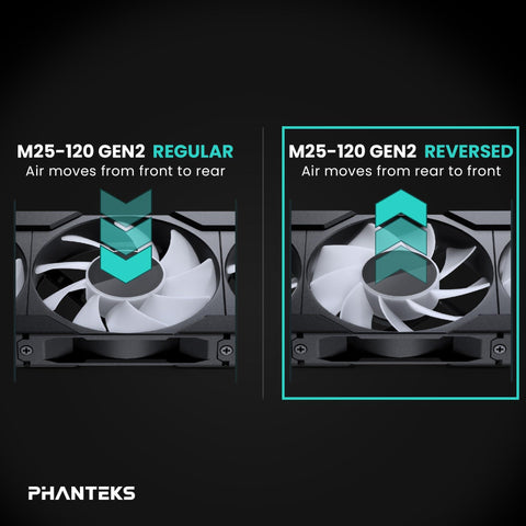 Details: The Phanteks M25 Gen2 comes packed with features previously only seen in the highest end fans. It’s Daisy-chain Unified Fan Frame easily interlocks with the next fan to link multiple fans together into one. The Linq6 cable combines all fan and lighting signals into one connector linking multiple fan and lighting products with a single cable. With its blades designed specifically for high airflow performance on radiators and heat sinks, the M25 Gen2 excels where it matters. Delivering low temperatures with a clean look to elevate your system. Fan Dimension: 120 x 120 x 25 mm (LxWxH). Wind Direction: Reversed. Color: White Matte blade / Black Fan Frame. Frame Material: PBT (Polybutylene Teraphthalate). Blade Material: PC (Polycarbonate). Fan+DRGB Connector: Linq6 (HY-2.0-6P). Fan + DRGB Cable: 120mm Daisy-chain. Bearing Type: Hydraulic Bearing. Max. Airflow: 73.69 CFM. Max. Static Pressure: 1.99 mmH2O. Max. Sound Level: 39.28 dBA. Motor Type: PWM, 2-Fase/4-poles. Speed Range: 350-2000 plus minus 10% RPM. Motor Voltage: DC 12V, 6-13.2V. Motor Current: 0.23A (Max: 0.30A). Motor Power: 2.76W. Motor Safety Protection: Polarity Protection. MTTF: 40000hrs at 50 degree Celsius. DRGB LED Quantity: 12 pcs. DRGB LED Voltage: DC 5V. DRGB LED Max Current: 0.43A. Scope of delivery: 1x M25-120 Gen2 Reversed Fan / 5x Fan Screws / 1x 500mm Linq6 Extension Cable / 4x (2xL, 2xR) Screw Cover Corner / 2x Screw Cover Bridge / 1x Installation Guide.
