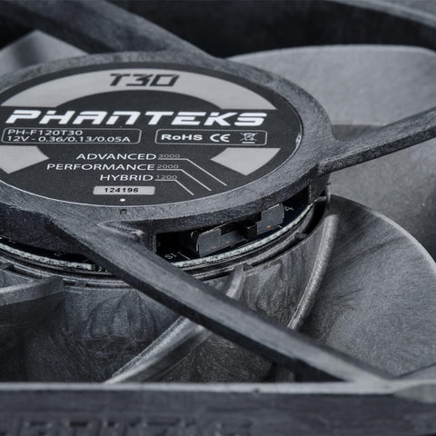 Details: The Phanteks T30-120 Fan brings unparalleled performance for any scenario. With its built-in fan profiles and wide RPM range, the T30-120 can be tuned for silent, balanced, or extreme performance operation via a simple switch. One fan to rule them all. Both the fan blades and fan frame are made from the absolute best fiber reinforced LCP (liquid crystal polymer) material. This material makes the blades and frame extremely rigid and durable. Fan Connector: 4-Pin Daisy-Chain. Cable Length: 130mm. Extension Cable Length: 500mm. Insulation Type: UL Class A. Flame Retardancy: UL-94V-0. Rated Voltage: DC 12V. Operating Voltage Range: DC 10.2-13.2V. Max Current: 0.36A. Max Power: 4.32W. MTTF: 150000 hours.