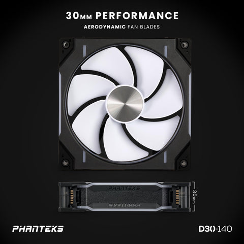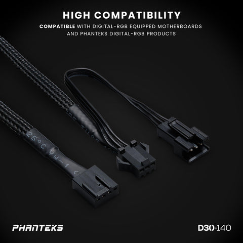 - The D-RGB lighting is integrated and visible from all sides of the D30-140 fan. The blades reflect the light coming from the Halos lighting ring inside the frame. Compatible with Digital-RGB equipped motherboards and Phanteks Digital-RGB products.