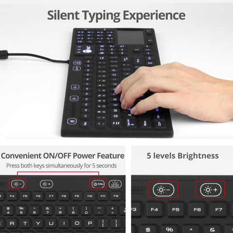 - LED Backlit - Adjustable LED backlighting with 5 brightness levels, so you can work comfortably in any lighting environment