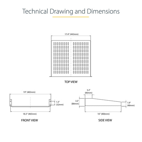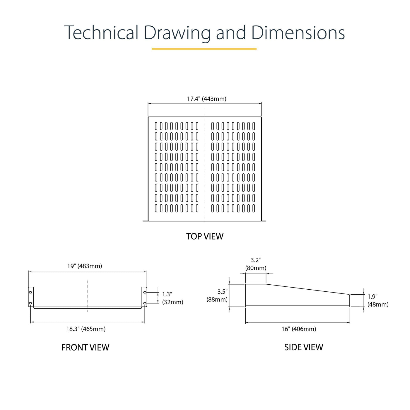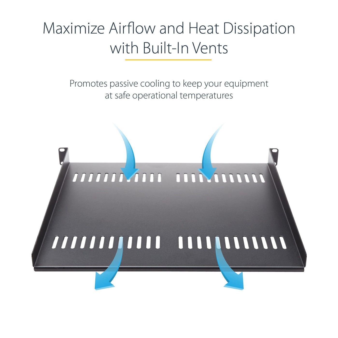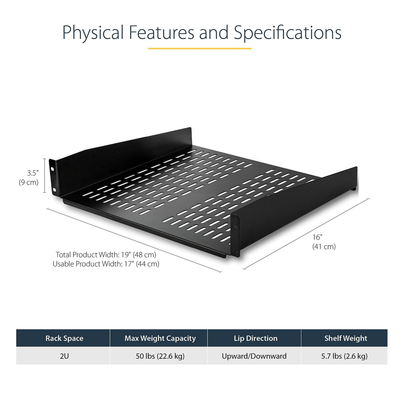 StarTech.com 2U Server Rack Shelf - Universal Vented Rack Mount Cantilever Tray for 19" Network Equipment Rack & Cabinet - Heavy Duty Steel - Weight Capacity 50lb/23kg - 16" Deep Shelf, TAA Sale