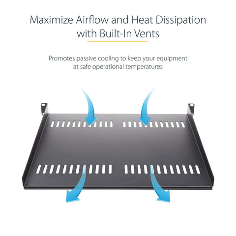 StarTech.com 2U Server Rack Shelf - Universal Vented Rack Mount Cantilever Tray for 19" Network Equipment Rack & Cabinet - Heavy Duty Steel - Weight Capacity 50lb/23kg - 16" Deep Shelf, TAA