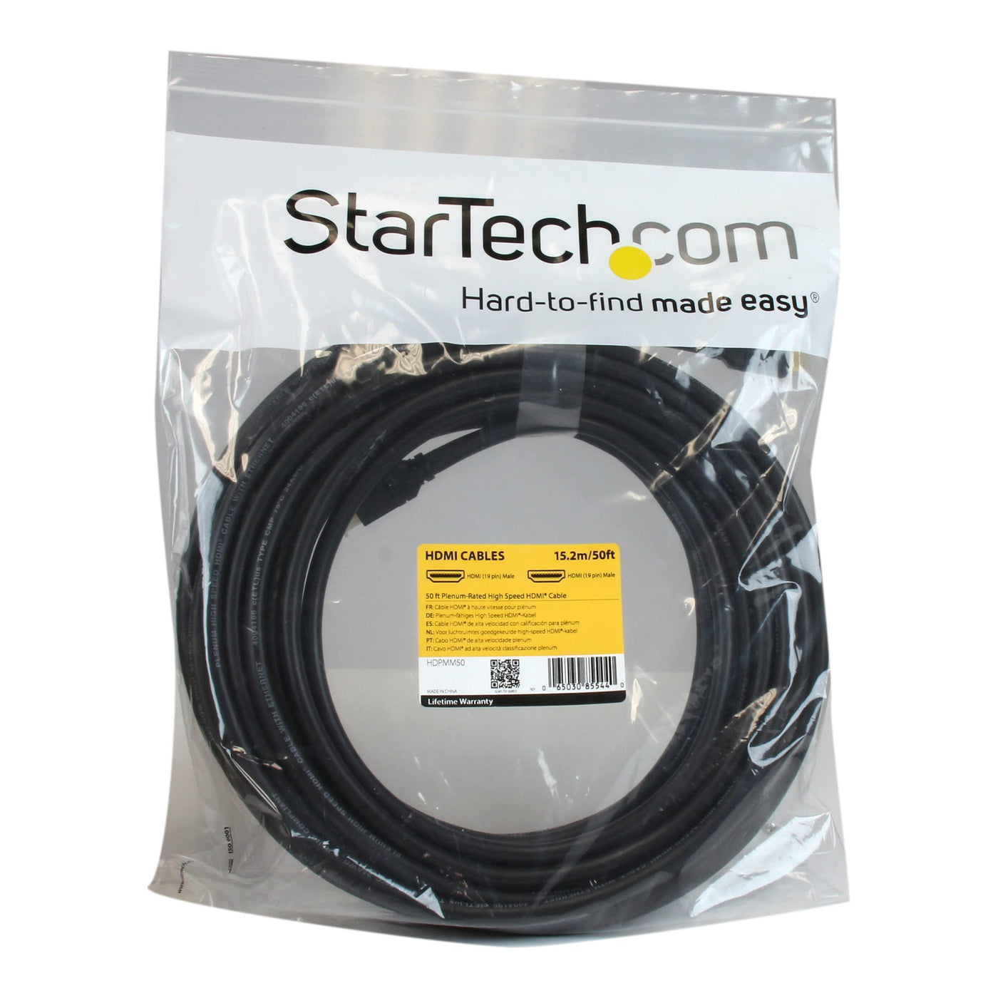 StarTech.com 50ft Plenum Rated HDMI Cable, 4K High Speed Long HDMI Cord w/ Ethernet, 4K30 UHD, 10.2 Gbps, HDCP 1.4, In Wall Plenum HDMI 1.4 Display Cable, HDMI to HDMI Computer to TV Cable (HDPMM50)