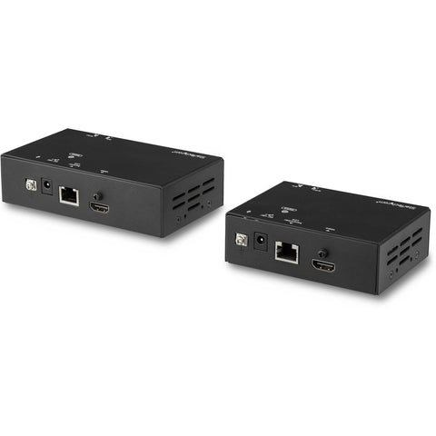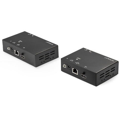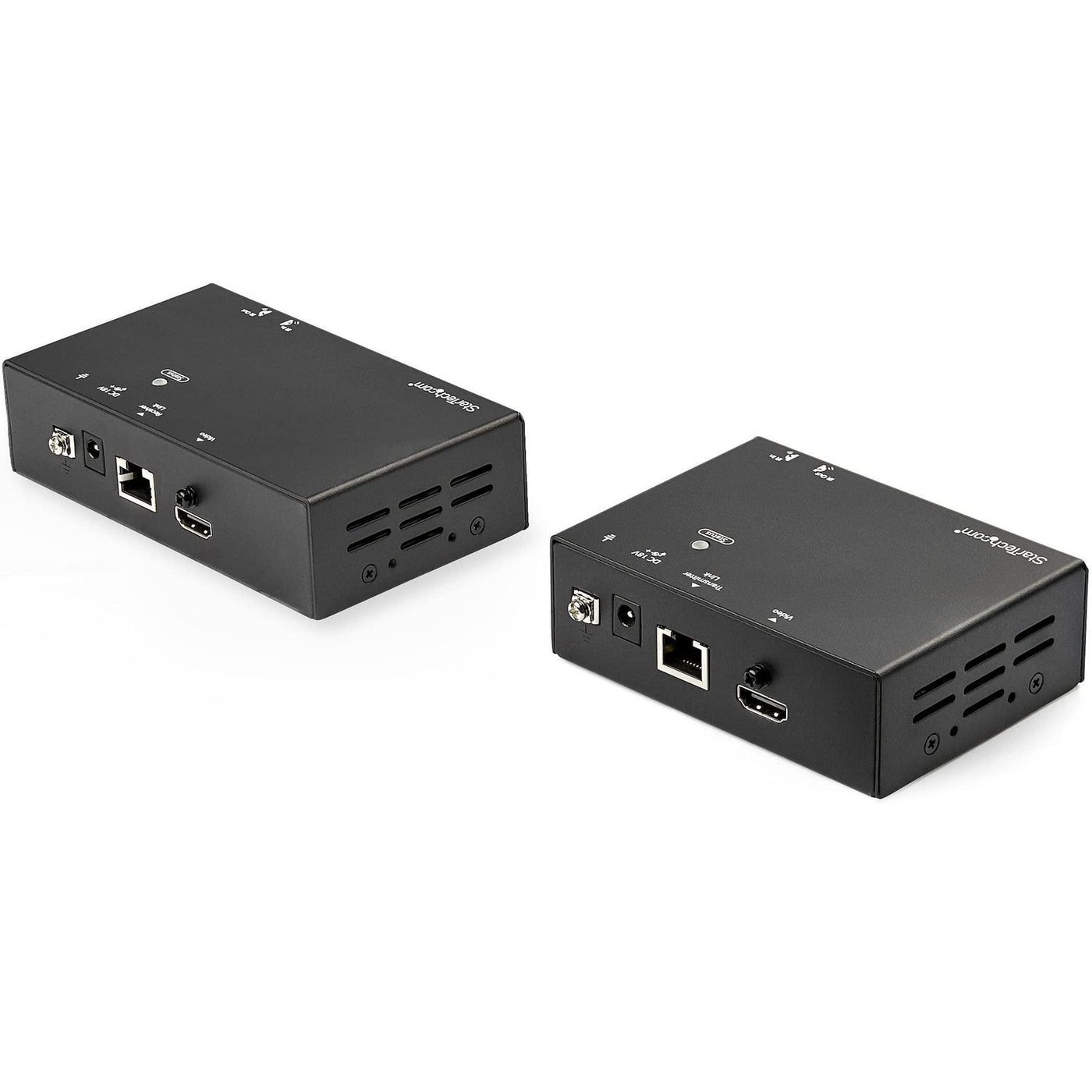Details: Get astonishing video quality at impressive distances with UHD 4K 60Hz resolution at up to 70 m (230 ft.) and 1080p 60Hz resolutions at up to 100 m (328 ft.) Hassle-free setup with video and power over a single CAT5e or CAT6 cable Sleek professional installation with optional mounting hardware included Remotely control your video source from the location of your remote display, with support for IR extension This HDMI Over CAT6 extender transmits your HDMI audio/video signal to a remote location up to 100 m (328 ft.) away. This HDMI over CAT6 extender maintains your Ultra HD 4K picture quality, even at 70 m (230 ft.) away from your video source. If you're not running 4K video, this extender supports High-Definition 1080p 60Hz and lower resolutions at even greater distances, up to 100 m (328 ft.) from your HDMI source. With full support for your HDMI 2.0 equipment, including 4K resolution at 60Hz, this extender can transmit at a bandwidth of up to 18Gbps, making it the ideal solution for high-resolution tasks requiring the highest color detail. For smoother video and color transitions, the extender offers 4:4:4 chroma subsampling via visually lossless compression, meaning every pixel gets its own unique color. The HDMI Extender Over CAT6 offers a hassle-free solution for your digital signage project. The extender only requires a single CAT5e or CAT6 cable, so you extend an HDMI signal using existing infrastructure that’s already in your building. Plus, this HDMI extender supports Power Over Cable (POC), which means you’ll only need one power adapter connected to either your transmitter or receiver. Mounting hardware is also included for discreet, professional installation. The ST121HDBT20L is TAA compliant and backed by a 2-year StarTech.com warranty with free lifetime technical support. Distribute HDMI in large buildings such as commercial shopping centers, stadiums, schools, and hospitals Extend your HDMI audio/video signals to locations where power outlets are limited, such as industrial sites Integrators and system designers can use existing CAT5 or CAT6 infrastructure to create digital signage solutions Specifications Warranty Information Warranty 2 Years Connector(s) 1 - Local Unit Connectors HDMI (19 pin) RJ-45 1 - Remote Unit Connectors RJ-45 HDMI (19 pin) Environmental Operating Temperature 0°C to 40°C (32°F to 104°F) Storage Temperature -10°C to 60°C (14°F to 140°F) Humidity 0% - 80 % RH (non-condensing) Hardware Ports 1 Cabling Cat 5e UTP or better Audio Yes Daisy-Chain No Indicators 1 - LED Indicators status LED (local) status LED (remote) Packaging Information Shipping (Package) Weight 8.1 oz [230.0 g] Package Length 11.0 in [28.0 cm] Package Width 8.1 in [20.6 cm] Package Height 2.4 in [6.2 cm] Performance Maximum Cable Length 328.4 ft [100.1 m] Max Distance 100 m / 330 ft Maximum Digital Resolutions Up to 70 m: 4096 x 2160 (4K) @ 60 Hz Up to 100 m: 1080p @ 60Hz Supported Resolutions 3840x2160 (4K) @ 60 Hz 2560x1600 1920x1200 @ 60 Hz 1920x1080 (1080p) 1280x720 (720p) Wide Screen Supported Yes Audio Specifications 7.1 Surround Sound Physical Characteristics Color Black Material Aluminum Product Length 4.0 in [10.2 cm] Product Width 3.0 in [7.6 cm] Product Height 1.0 in [2.6 cm] Weight of Product 3.9 oz [110.0 g] Power Power Source AC Adapter Included Input Voltage 100 - 240 AC Input Current 0.6A Output Voltage 18 DC Output Current 1 A Center Tip Polarity Positive Plug Type M Power Consumption (In Watts) 18 What's in the Box 1 - Included in Package HDMI over CAT6 transmitter HDMI over CAT6 receiver universal power adapter (NA/JP, EU, UK, ANZ) IR blaster IR receiver quick-start guide 2 - Included in Package mounting brackets 8 - Included in Package rubber feet