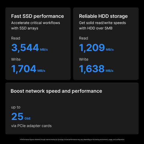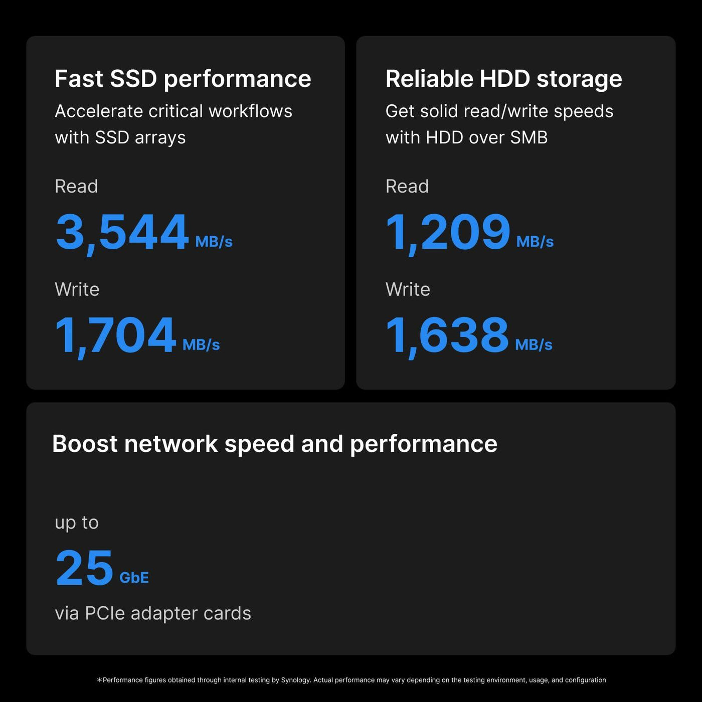 - Scale up to 24 drive bays with one Synology RX1223RP Expansion Unit