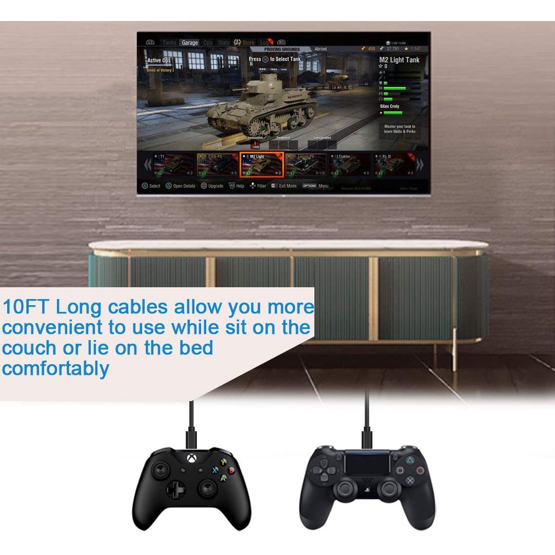 3Pack 10FT PS4 Charger Cord for Xbox One Controller,PS4 Charging Cable,Micro USB Cable for Xbox One S/X Slim Elite Controller,PlayStation 4 Games,Dualshock 4 Controller Data Sync Cord Sale