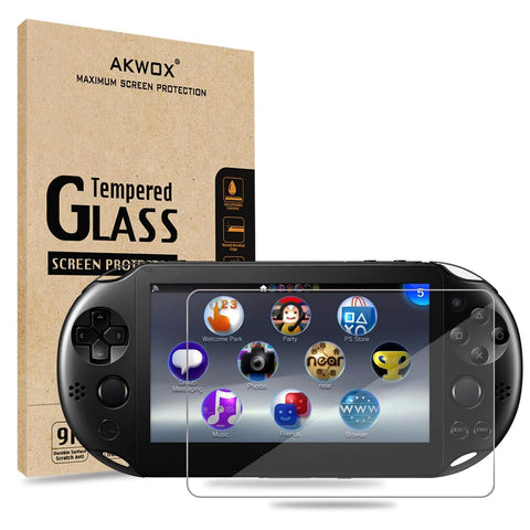 AKWOX Screen Protector Compatible with PS Vita 2000 (Pack of 2), Premium HD Clear 9H Tempered Glass Screen Protective Film Max Clarity High Touch Accuracy Film
