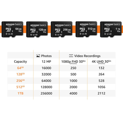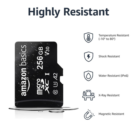 Amazon Basics Micro SDXC Memory Card with Full Size Adapter, A2, U3, Read Speed up to 100 MB/s, 256 GB, Black Sale