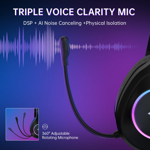 - 【Triple-Stage Noise Cancelling Microphone】The boom mic’s foam isolation physically blocks ambient sounds, DSP filters eliminate echo and background noise, and AI-driven voice enhancement ensures your teammates hear you clearly—even in the loudest environments.