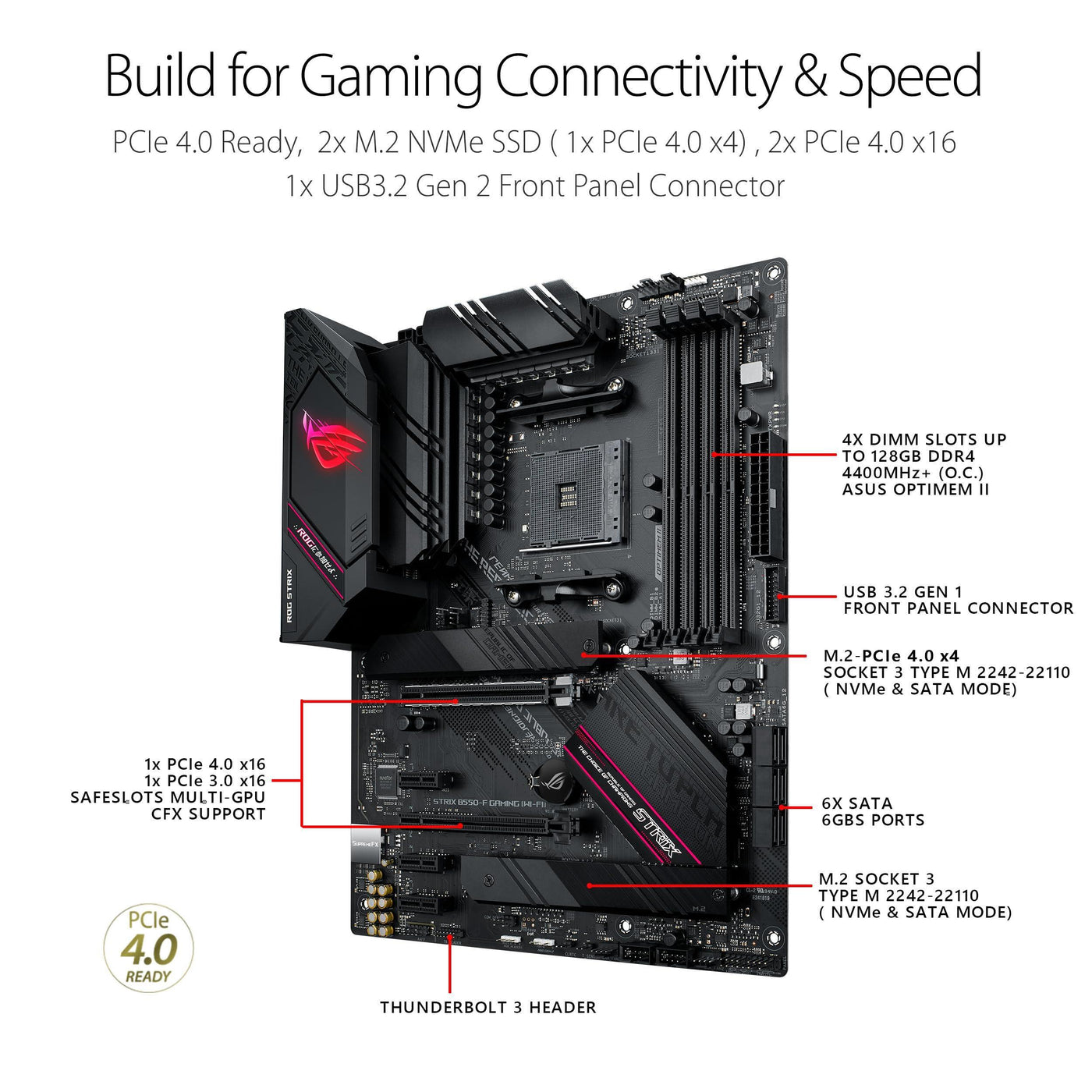 Details: Experience next-level performance and connectivity with the Asus ROG STRIX B550-F GAMING WIFI II, featuring PCIe 4.0, WiFi 6E and 2.5Gb Ethernet. Robust power and effective cooling make the ROG Strix B550-F Gaming (WiFi 6) the perfect partner for 3rd Gen AMD Ryzen CPUs. Futuristic aesthetics, intuitive software, and a reliable Stack Cool 3+ design put your build in the winner’s circle.