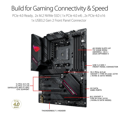 - Best gaming connectivity: PCIe 4.0-ready, dual M.2 slots, USB 3.2 Gen 2 Type-C, plus HDMI 2.1 and DisplayPort 1.2 output
