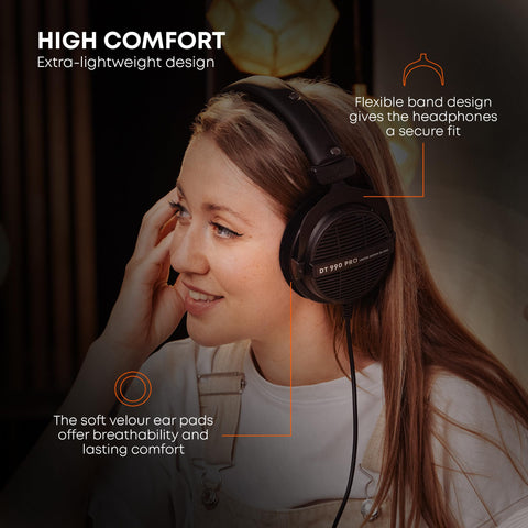 Details: The DT 990 PRO (250 ohms) is an open dynamic headphone that is ideal for professional use in studios. Headphone frequency response - 5 - 35.000 Hz