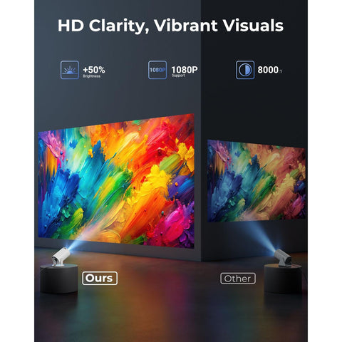 - Ultra-Portable Mini Projector – As Small as a Soda Can: Measuring just 3.73 × 3.73 × 6.17 inches and weighing only 0.77 lb, this portable mini projector slips easily into a backpack or handbag. Whether for travel, dorm rooms, or compact living spaces, it lets you enjoy big-screen entertainment anywhere—without the bulk or hassle of traditional projectors. Includes 2-years factory support and reliable customer support to ensure peace of mind (Tip: Power adapter connection required for use.)