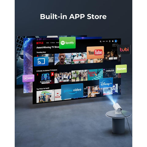 - Built-in Streaming Apps & Versatile Connectivity: Stream YouTube, Disney+, and more with built-in apps—just connect to Wi-Fi and enjoy, no extra devices needed. This projector supports both wireless mirroring and wired connections for phones, tablets, and laptops. HDMI and USB ports let you easily connect game consoles, Fire Stick, or computers—perfect for home entertainment, family sharing, or on-the-go projection