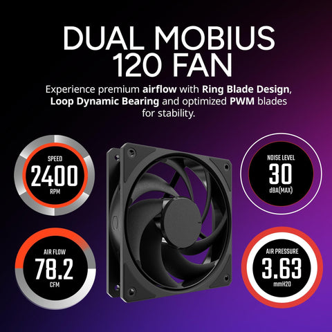 - Dual Mobius 120 Fan: Experience premium airflow with Loop Dynamic Bearing and optimized PWM blades for stability.