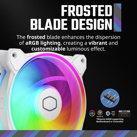 - Frosted Blade Design: The frosted blade enhances the dispersion of aRGB lighting, creating a vibrant and customizable luminous effect.
