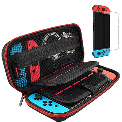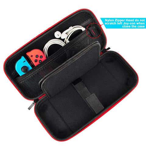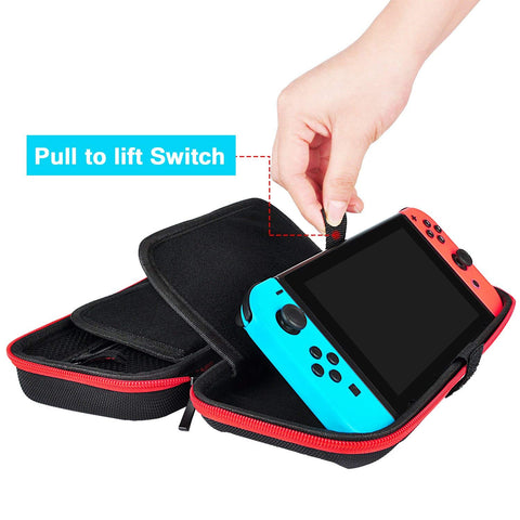 - DELUXE NINTENDO SWITCH CASE - Durable hard shell Protect your Switch Console will not scratches. A HOOK secures the Switch inside the case (We have replaced two elastic straps with a Tab,It is a lot easier to put in and take out the Switch with a Tab), make your switch more stable and convenient when you're traveling or not using.