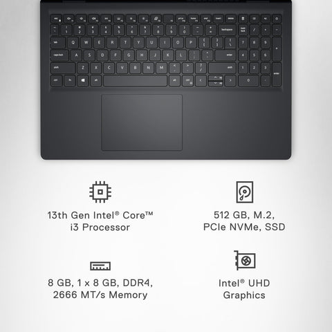 Details: A simple way to take on your day. The Inspiron 15 laptop is as stylish on the outside as it is efficient on the inside. Built with up to 13th Gen Intel processors, you can finish your to-do list in no time. Your Inspiron PC is now ready for business with military-grade testing for added reliability and an easy-to-use, built-in Trusted Platform Module to protect your data. Connect all your personal and business devices with a range of options. Enjoy quality video chats with a built-in FHD webcam that keeps you looking your best. Easily spend more screen time on the things you enjoy with Dell ComfortView software, which is software solution that helps reduce harmful blue light emissions to keep your eyes comfortable over extended viewing times, like your next movie marathon. Adaptive thermals keep your PC running efficiently, whether at your desk or working from your lap. Your Inspiron 15 notebook intelligently adjusts its power and thermals to keep running smoothly, using advanced algorithms and accelerometers.