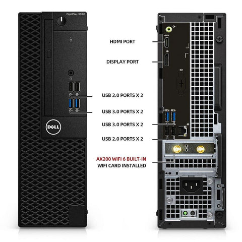 - AX200 WIFI 6 WIFI Card Installed - The Data Transfer Rate of this WIFI card reach 3000 Megabytes Per Second. With WIFI 6 technology, you'll get faster speeds, improved security,so you can easily connect to the internet and other devices in your home or office on the dell desktop pc.