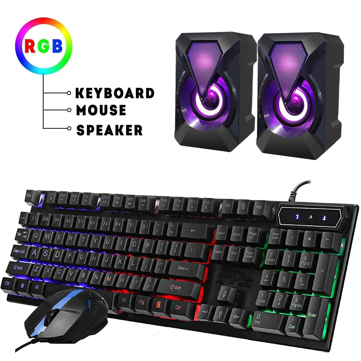 - ⌨️ +🖱️ RGB KEYBOARD AND MOUSE | RGB SPEAKER: 3 LED Colors - Blue, red, green, Backlight LED Lights for use at night time, looks amazing. The keyboard mouse and speaker are responsive, reliable, and probably plastered in RGB lights. It's important you pick the right one for your desktop.