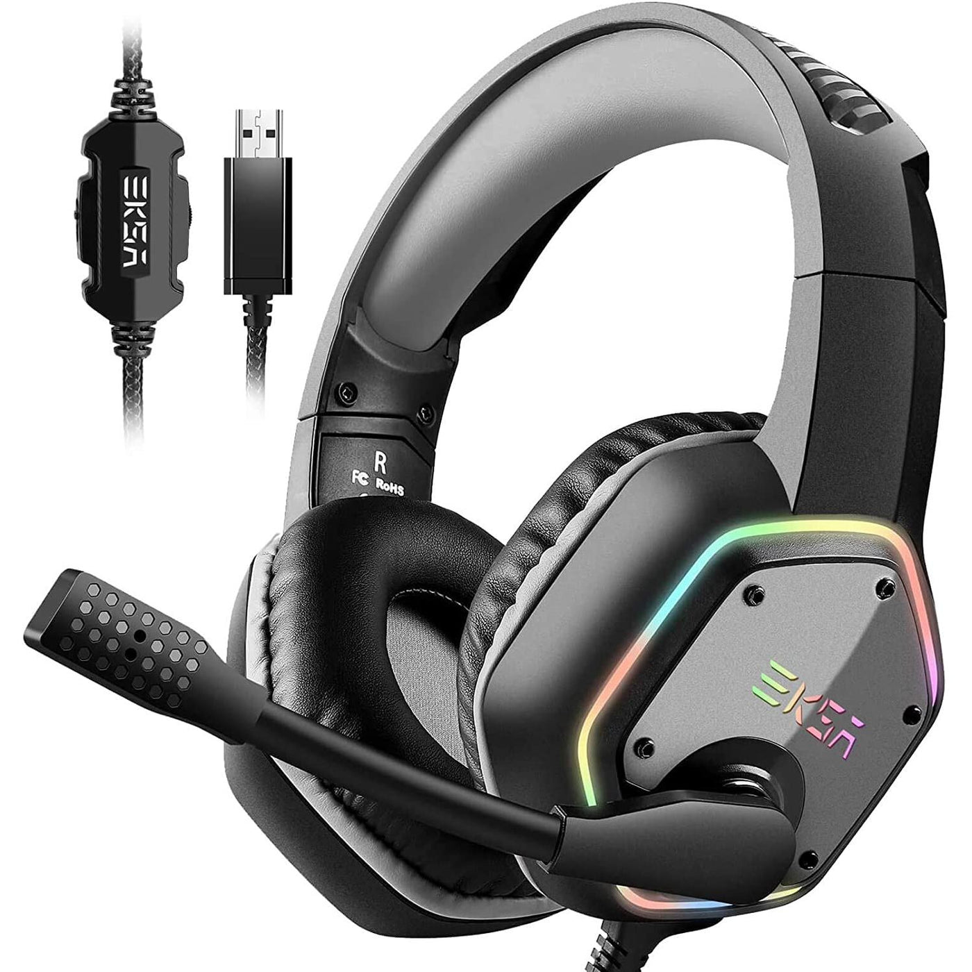 EKSA E1000 USB Gaming Headset for PC, Computer Headphones with Microphone/Mic Noise Cancelling, 7.1 Surround Sound, RGB Light - Wired Headphones for PS4, PS5 Console, Laptop, Call Center