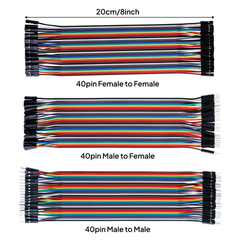 - Including 1X 40-pin male to female jumper wires, 1X 40-pin male to male jumper wires, 1x40-pin female to female jumper wires