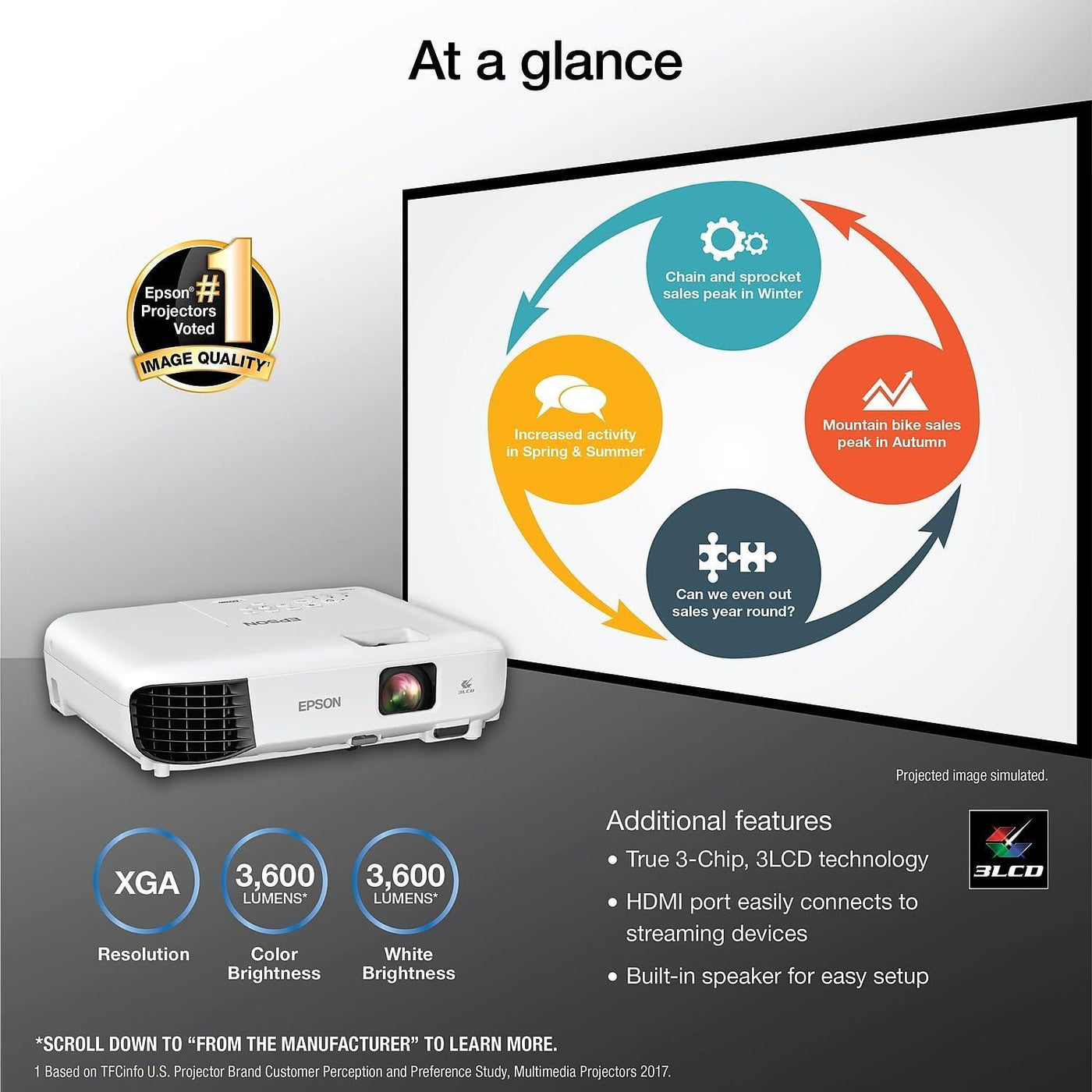 - Amazing brightness — 3,600 lumens of color and white brightness (1) ideal for displaying large-group presentations, spreadsheets and videos, even in well-lit rooms