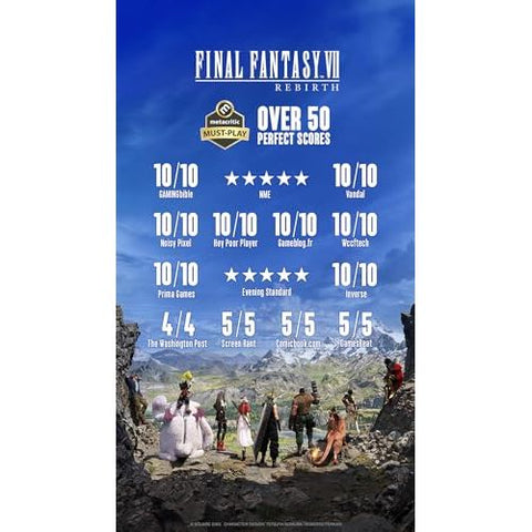 Details: The Unknown Journey Continues... FINAL FANTASY VII REBIRTH is the highly anticipated new story in the FINAL FANTASY VII remake project, a reimagining of the iconic original game into three standalone titles by its original creators. In this game, players will enjoy various new elements as the story unfolds, culminating in the party’s journey to “The Forgotten Capital” from the original FINAL FANTASY VII. The Amazon Exclusive Edition includes a limited edition FINAL FANTASY VII REBIRTH PS5 Controller Skin featuring Cloud and Sephiroth. This PS5 controller skin provides full coverage without buttons or sensor interference. © SQUARE ENIX CHARACTER DESIGN: TETSUYA NOMURA/ROBERTO FERRARI LOGO ILLUSTRATION:© YOSHITAKA AMANO