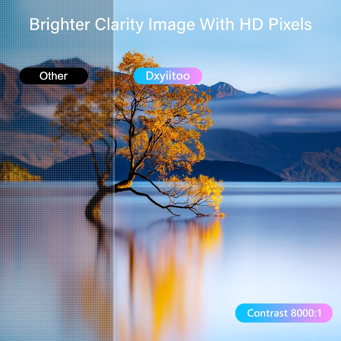 - đă12000 lm & 250 inch Big Screenă The image quality of 12000 lumens and the ultra-high contrast ratio of 8000:1 provide clearer, brighter, and more colorful images with delicate and wonderful image quality. The screen display supports up to 250 inches, which keeps your viewing distance to protect your eyes and bring you the ultimate home theater viewing pleasure.
