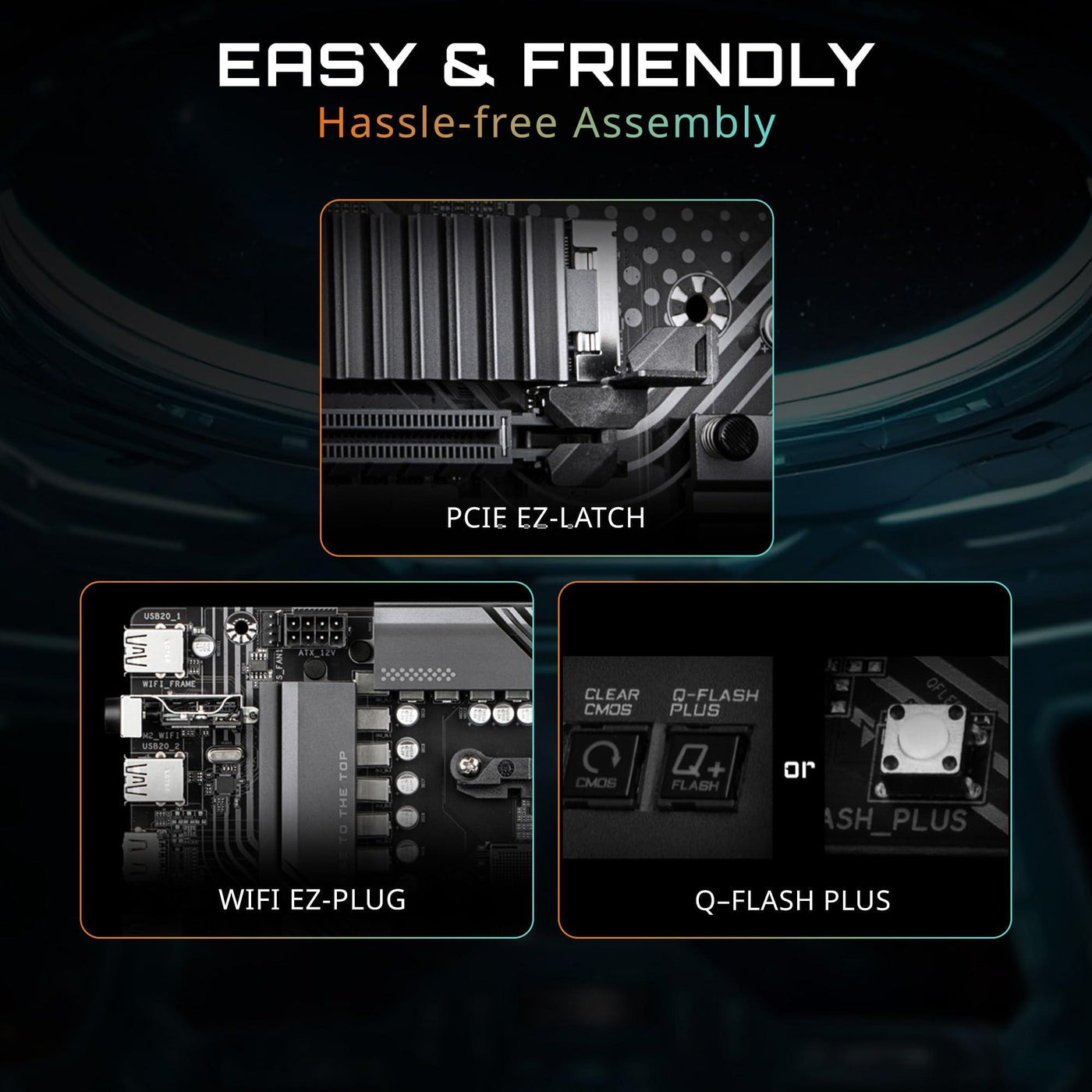 - Advanced Thermal Armor: Enlarged VRM heatsinks layered with 5 W/mk thermal pads for better heat dissipation. Pre-Installed I/O Armor for quicker PC DIY assembly.