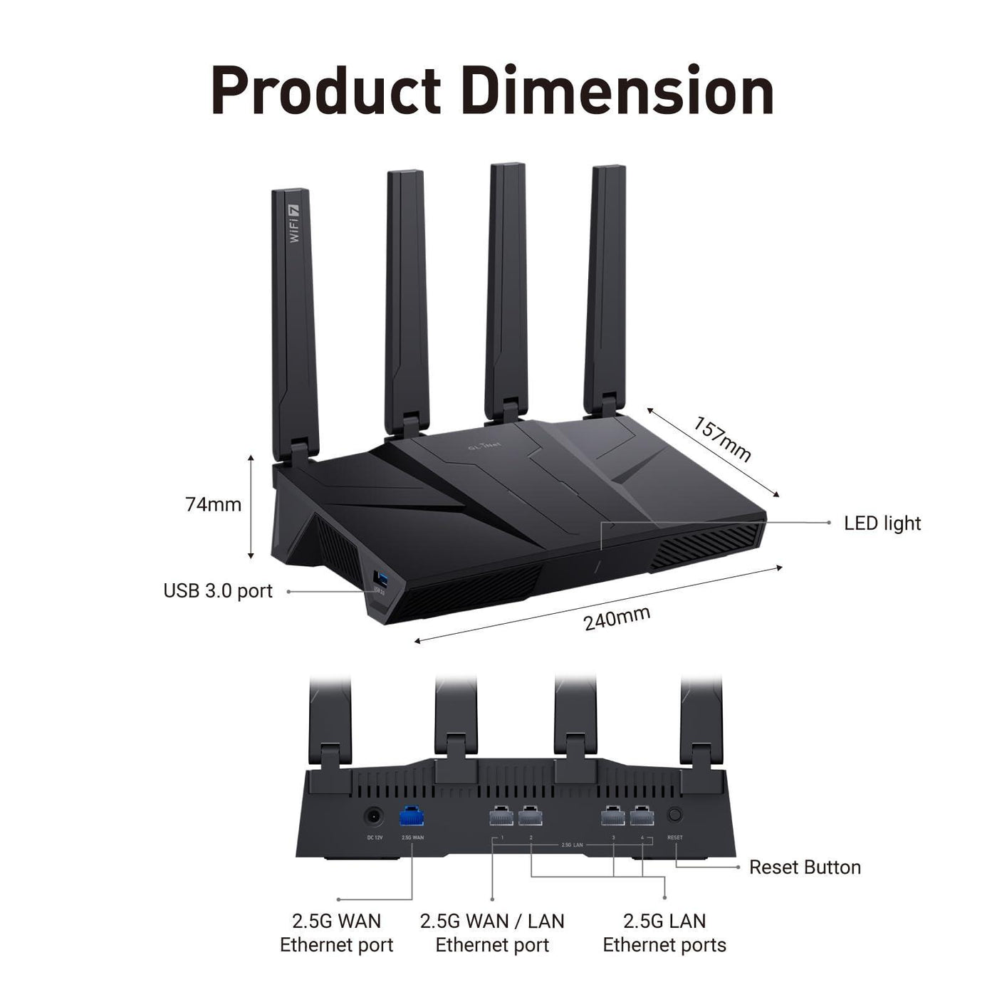 - ***Please update the firmware upon initial setup of the router, as it greatly enhances the device's performance and ensures a superior user experience.*** 【WiFi 7 Standard with ultra-low latency】Wi-Fi 7 speeds up to 9 Gbps to let you enjoy smoother 8K streaming, gaming, video calls and more, DDR4 1GB / eMMC 8GB