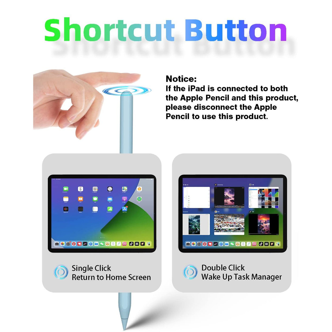 - 【Shortcut Key Functions】Compared with an ordinary stylus pen, The 2nd Generation pencil has a shortcut key function, After connecting to Bluetooth, tap the button at the top to implement shortcut functions. One tap returns to the main screen, and double-tap back to the APP selection page. swipe from the bottom left to the top right corner of the iPad screen to take a screenshot.