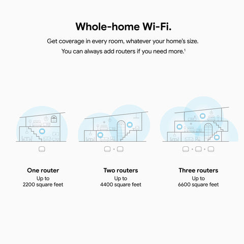 Details: PRODUCT OVERVIEW:Nest Wifi blankets your whole home in fast, reliable Wi-Fi. With up to 2200 sq. ft. of coverage, it automatically updates itself to get new features and help your network stay safe. And Nest Wifi points have a speaker with the Google Assistant for extra help around the house.KEY FEATURES:This product includes one router unit.Nest Wifi is a scalable and flexible Wi-Fi system. These Nest Wifi devices work together to blanket your whole home in fast reliable Wi-Fi and eliminate buffering in every room with coverage up to 4400 square feet.The Wi-Fi router plugs into your internet provider's modem to create your Wi-Fi network. For more coverage add Nest Wifi routers or points to your system.Nest Wifi routers are strong enough to handle up to 200 connected devices and fast enough to stream multiple 4K videos at a time. Compatible with Google Wifi; Ethernet ports included on each router. 15W power adapter.Intelligently works behind the scenes to make sure your Wi-Fi remains fast. Walk from room to room on a video call with an uninterrupted signal. Nest Wifi automatically updates itself to get new features and help your network stay safe and sound.Nest Wifi is easy to set up in the app. Easily create a guest network and share your password in just a few taps. Decide which devices to prioritize for faster speeds and use parental controls to manage online time for the kids.