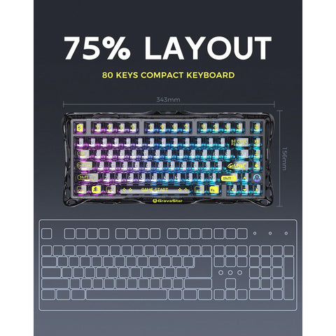 - ⚡Tri-mode Connectivity: GravaStar Keyboard Supports 2.4GHz wireless connection (1K Hz polling rate), Bluetooth 5.0, and wired (8K Hz polling rate)connections, offering seamless compatibility with Windows XP up and MacOS. It can be connected to up to three devices at the same time, and switch between them easily by FN and key combination keys. No limits about your keyboard connection to meet the needs of work, gaming, and study.