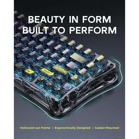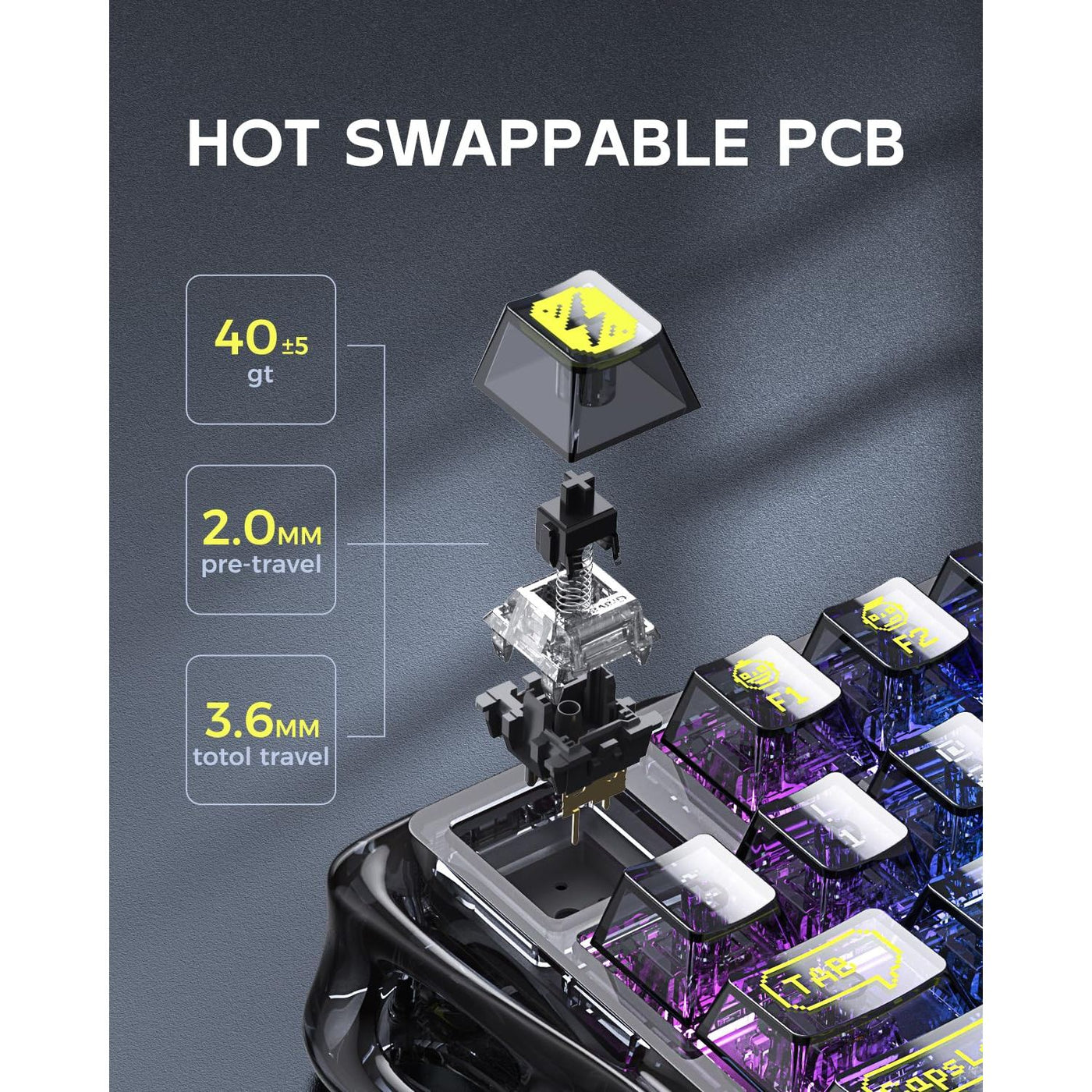 - 🏆Stylish and Unique Design: The GravaStar Mechanical Keyboard features a hollow and skeletal design that breaks away from traditional keyboard aesthetics, making it a standout piece on any desk. Constructed from durable PVC material, the transparent frame and keycaps maximize the cool backlight RGB effects and wear-resistant appearance.