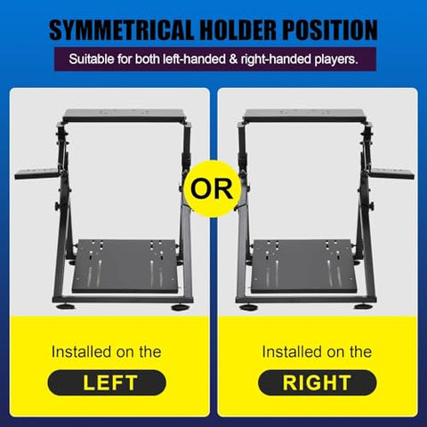 - High Compatibility: As a universally designed wheel stand, this bracket fits all racing wheels, pedals, and shifters. It is compatible with Logitech G25, G27, G29, G920, G923 Thrustmaster T300RS, TX F458, T500RS, T3PA-PRO (F1/GT) and CSR pedals. Note: wheel, shifter, and pedals NOT included.