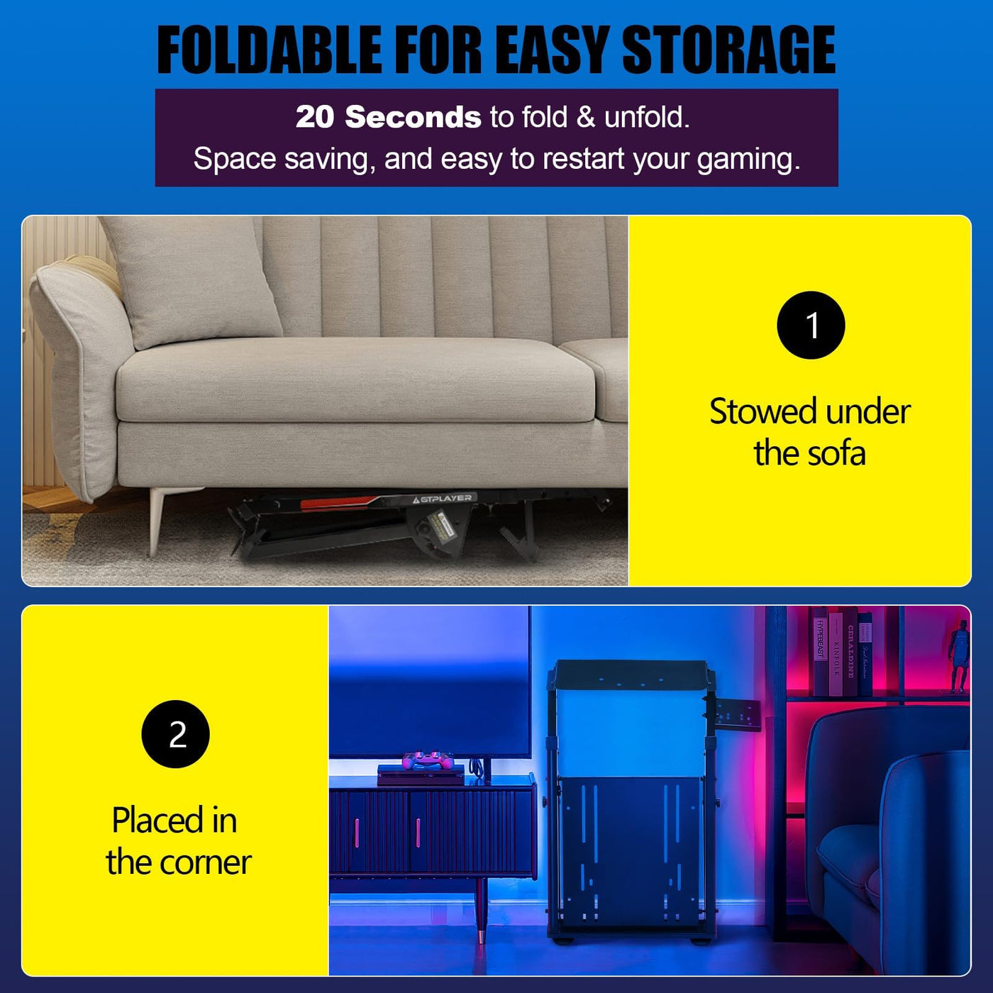- Folded for storage: After enjoying the game, you can easily fold this racing wheel stand and store it under your couch/bed or in the corner, making it a perfect choice for players with limited storage space. The compact design allows you to carry it anywhere to keep your gaming enthusiasm with you.