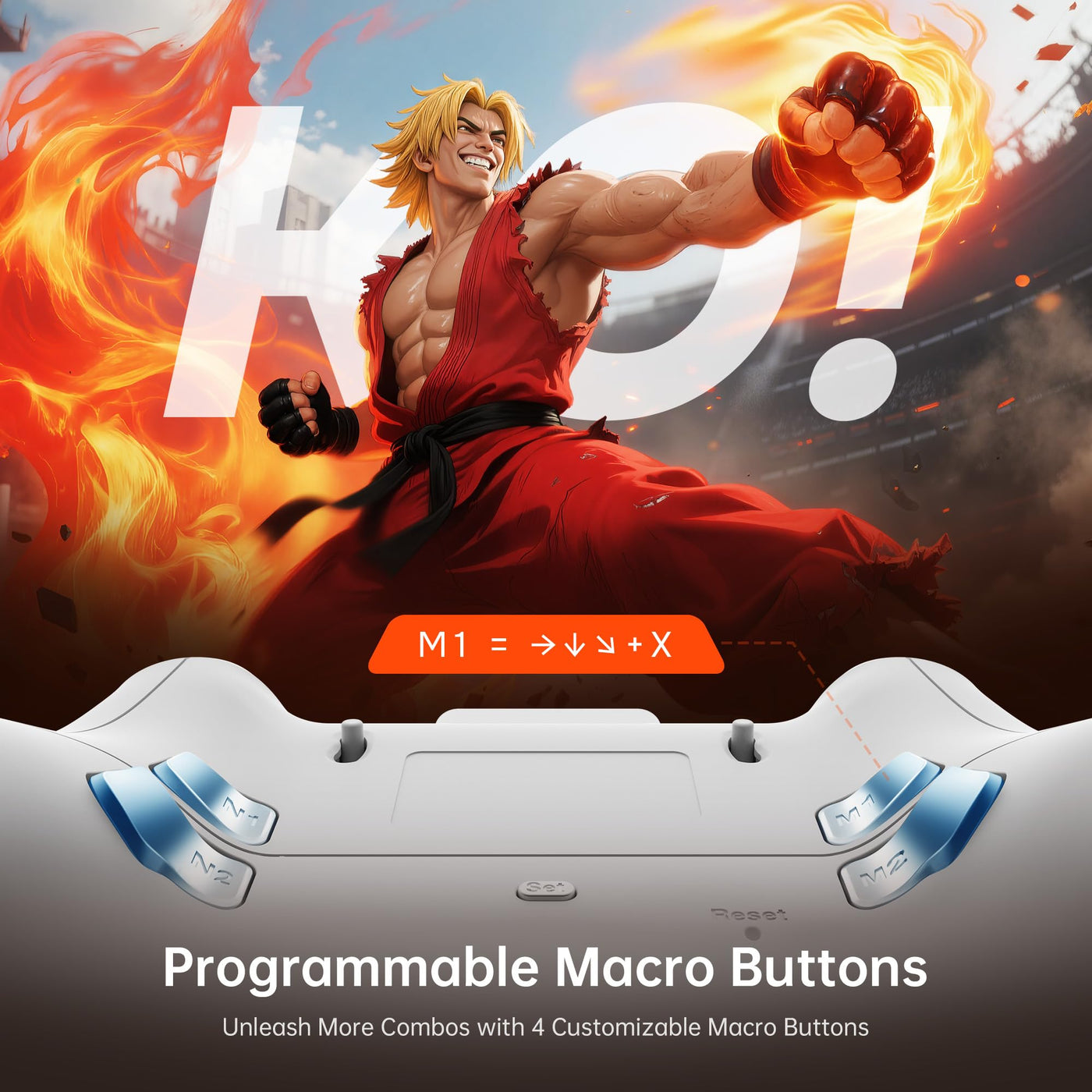 - 🎮 Interactive Screen & 4 Programmable Back Buttons: Effortlessly configure vibration, turbo, macros, joystick sensitivity, and pairing via the intuitive interactive display, no complex button combos needed! Four programmable back buttons let you assign ultimate skills or shortcuts, ensuring lightning-fast reactions in game.