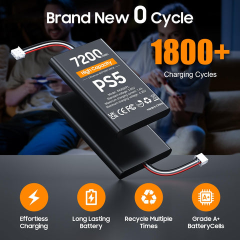 - 【Quality & Safety Guarantee】 The ps5 battery pack with optimized premium Grade A cells to ensure a longer battery lifespan (number of recharge cycles) with no memory effect. This built-in intelligent chip and multi-ple protections also prevent the ps5 battery replacement pack from over-voltage, over-current, over-charge, over-heating, short-circuit. Our dualsense battery can match OEM ps5 controllers