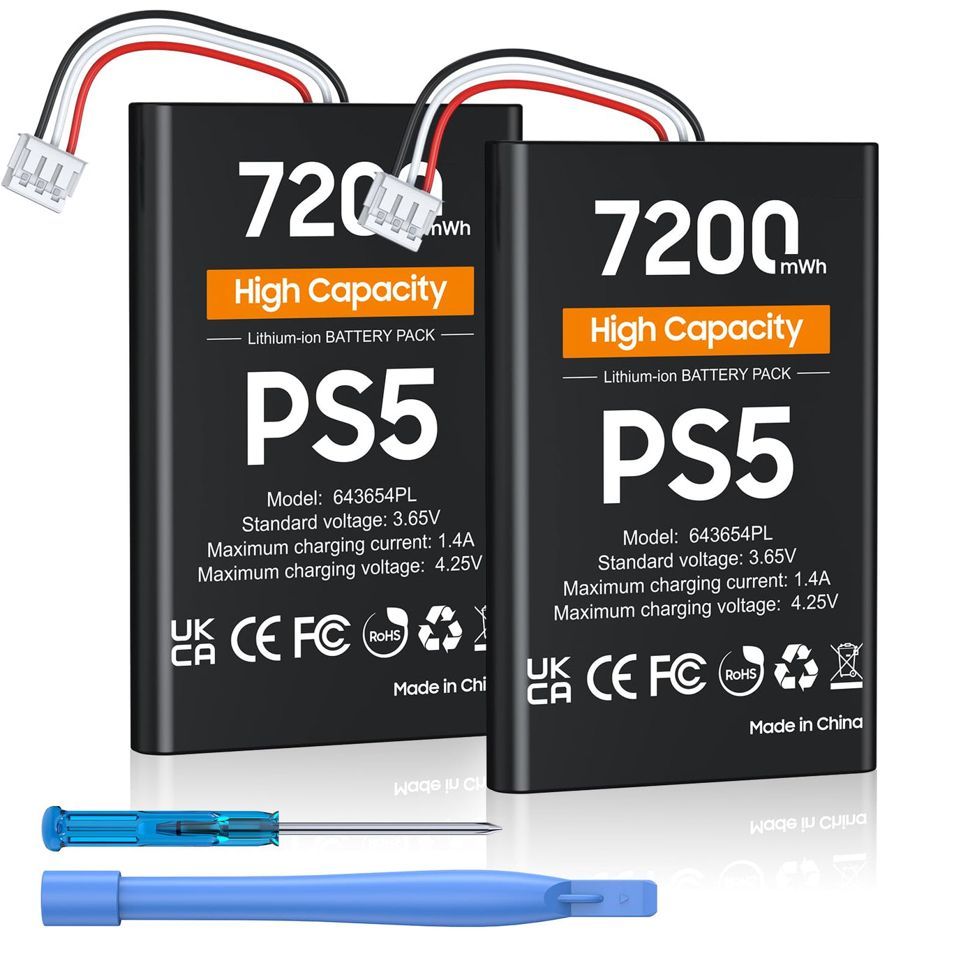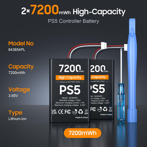 - 【Battery Specification】2 pack PS5 batteries, Capacity: 7200mWh, Voltage : 3.65V ; Dual PS5 battery replacement for playstation 5 controller