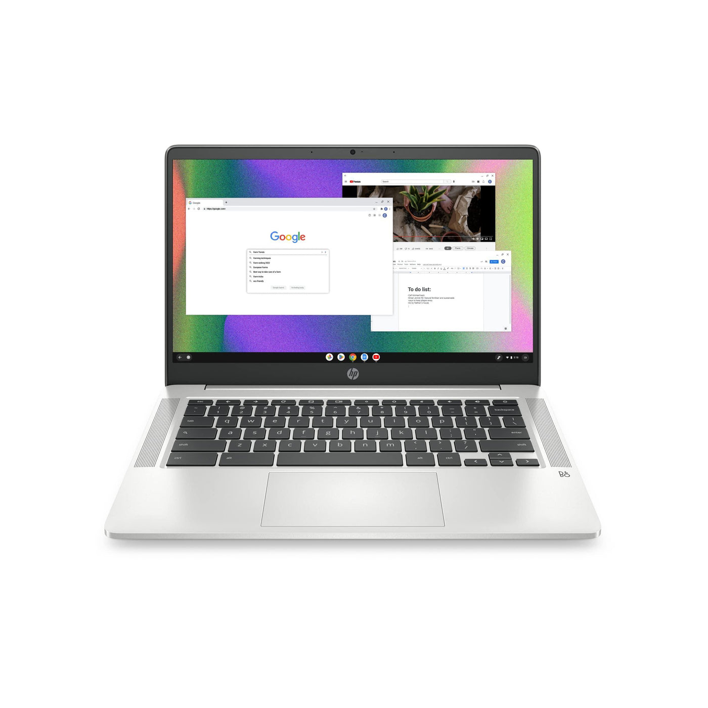 Details: Whether you need a laptop for work, college, or everyday computing, the HP Chromebook 14 Laptop has got you covered. Watch movies or view spreadsheets in high-quality HD and in direct sunlight with a 14-inch anti-glare, micro-edge screen (1). Plus, with custom-tuned dual speakers, you’ll enjoy clear authentic audio to elevate all of your entertainment needs. Not only is this Chromebook outfitted for relaxing, but it’s also a productivity powerhouse. The HP laptop computer’s portable and lightweight design lets you take it just about anywhere, while the Intel® Celeron N4120 processor touts plenty of power for even your busiest days (2). Enjoy the highest resolution games and movies with the 4K-ready Intel UHD Graphics 600 (3) (4). Multitask faster, even with multiple windows open, and safely store more content with this HP 14-inch laptop’s 4 GB of RAM and 64 GB of eMMC storage (5).Pull all-nighters or binge-watch your favorite show with confidence thanks to your HP notebook computer’s 14 hours of battery life (6). When you do run short on power, just plug in your Chromebook charger and HP Fast Charge takes your battery to 50% in just 45 minutes (7). Not only does the Chrome OS give you greater security and an always up-to-date experience, but you can also take advantage of millions of apps in the Google Play Store (8). Work confidently with a 1-year limited hardware warranty and stay connected with the dependable 802.11a/b/g/n/ac (2x2) Wi-Fi and Bluetooth combo (9) (10). Expand the way you game, work, and create with the innovative HP Imagepad, a true multi-touch touchpad that supports four-finger gestures. Your HP 4K laptop isn’t just built for greater productivity and more immersive entertainment, but also for sustainability. Do your part toward a cleaner planet with an ENERGY STAR certified (11) and EPEAT Silver registered (12) Chromebook 14-inch.