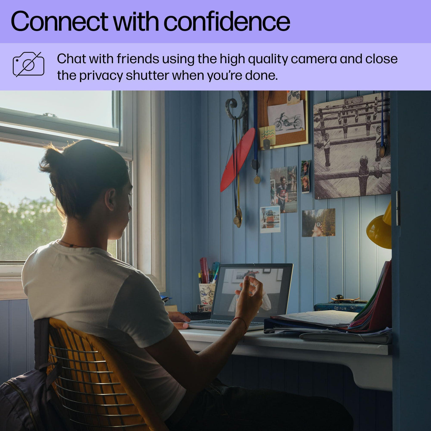 - CONNECT WITH CONFIDENCE - Chat or collaborate with friends using the high-quality HP True Vision FHD camera and keep your private moments private with the easy-to-access camera privacy shutter when not in use