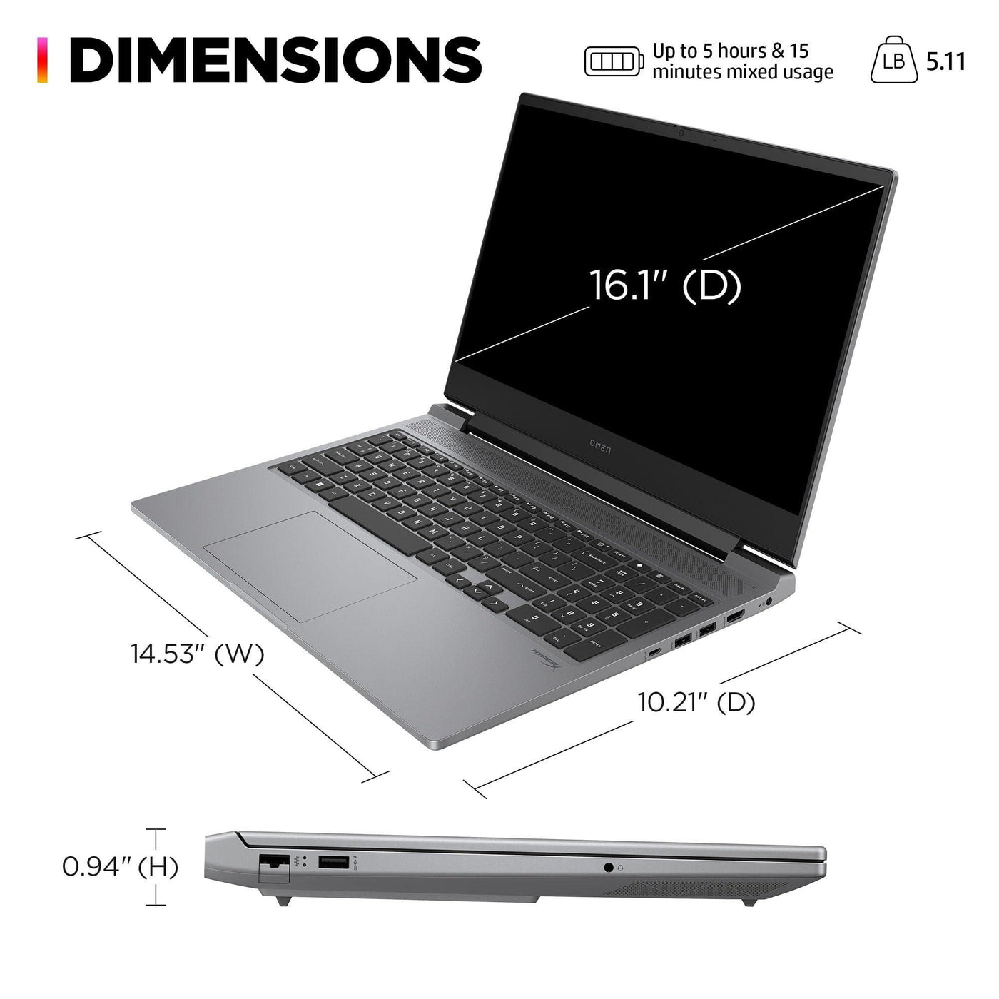 HP OMEN 16 inch Laptop, FHD 144Hz Display, Intel Core i7-14650HX, 16 GB RAM, 512 GB SSD, NVIDIA GeForce RTX 4060 GPU (8 GB Dedicated), Windows 11 Home, 16-ae0100nr (2024)