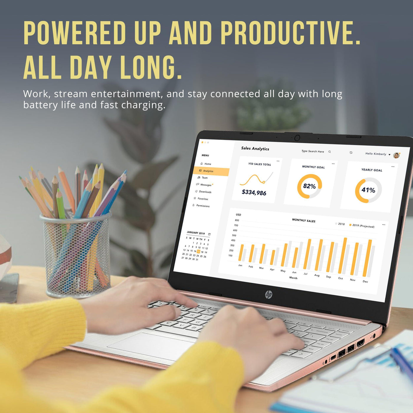HP Stream 14" HD BrightView Laptop, Intel Celeron N4120, 16GB RAM, 416GB Storage (128GB eMMC + 288GB Docking Station Set), Intel UHD Graphics, 720p Camera, Wi-Fi, 1 Year Office 365, Win 11 S, Gold