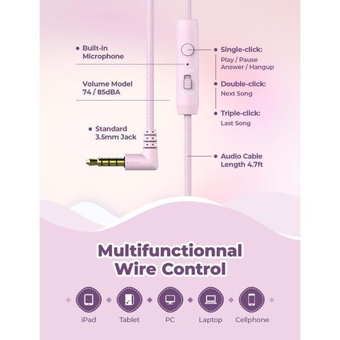 - [Built-in Mic & Great Compatibility]: iClever wired headphones work with the build-in HD microphone for hands-free phone calls. These over-ear headphones for kids support a wide range of devices with 3.5mm audio jack like Chromebook, Kindle Fire, Switch, iPad, Smartphone, MP3/4, Study Tablet, Laptop, PC etc.
