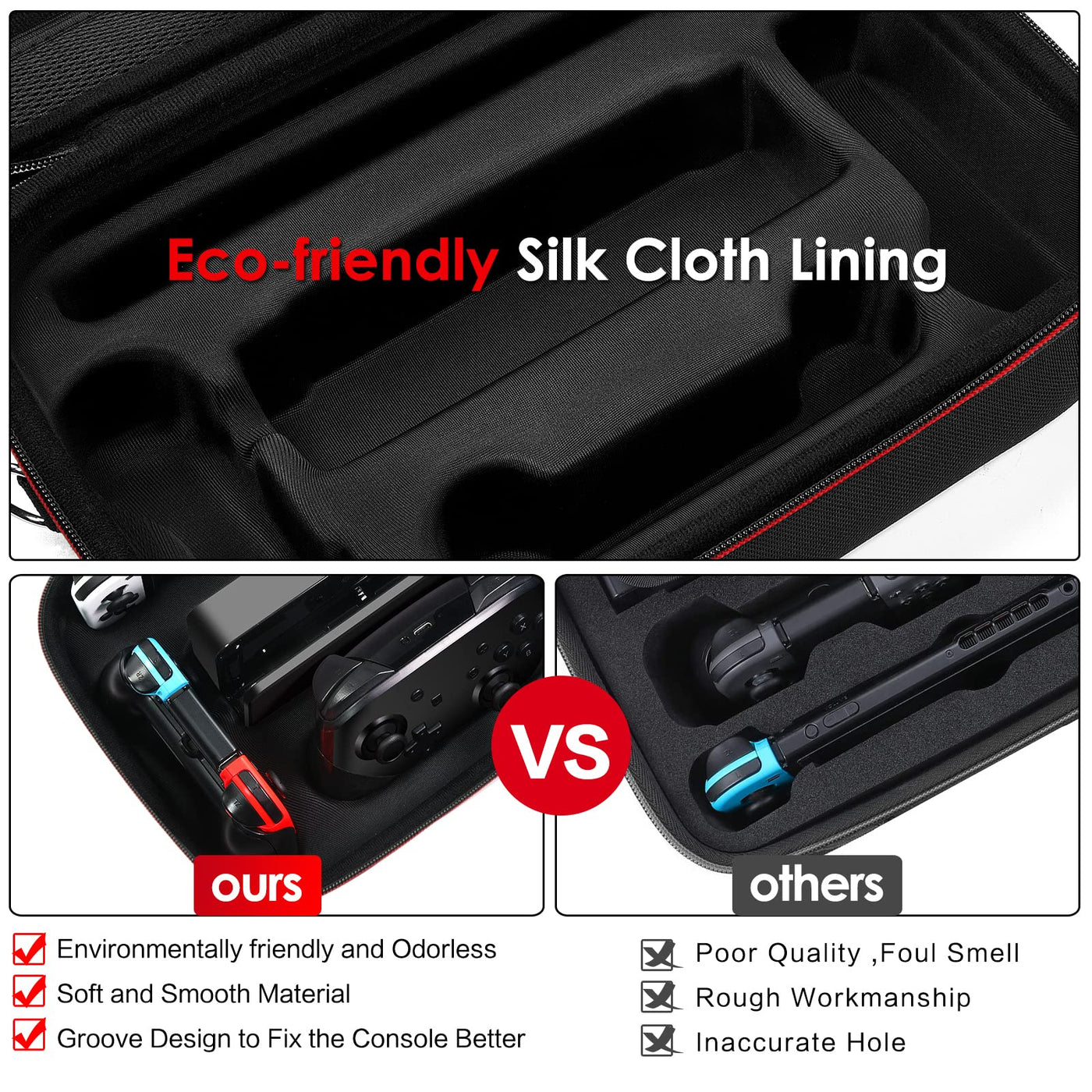 - Deluxe Travel Carrying Case. Specially designed to make your Console system even more portable & travel friendly. Comfortable handle strap is ideal for carrying. Large storage is suitable to take all the Switch accessories when go on a trip.