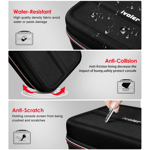 - Hard Protective Case. Hard EVA shell case protects the console from drops, scratches, bumps, splash and dust. Soft liner protects your console from getting scratches. The design of groove make accessories separate so that avoid to scratch each other.