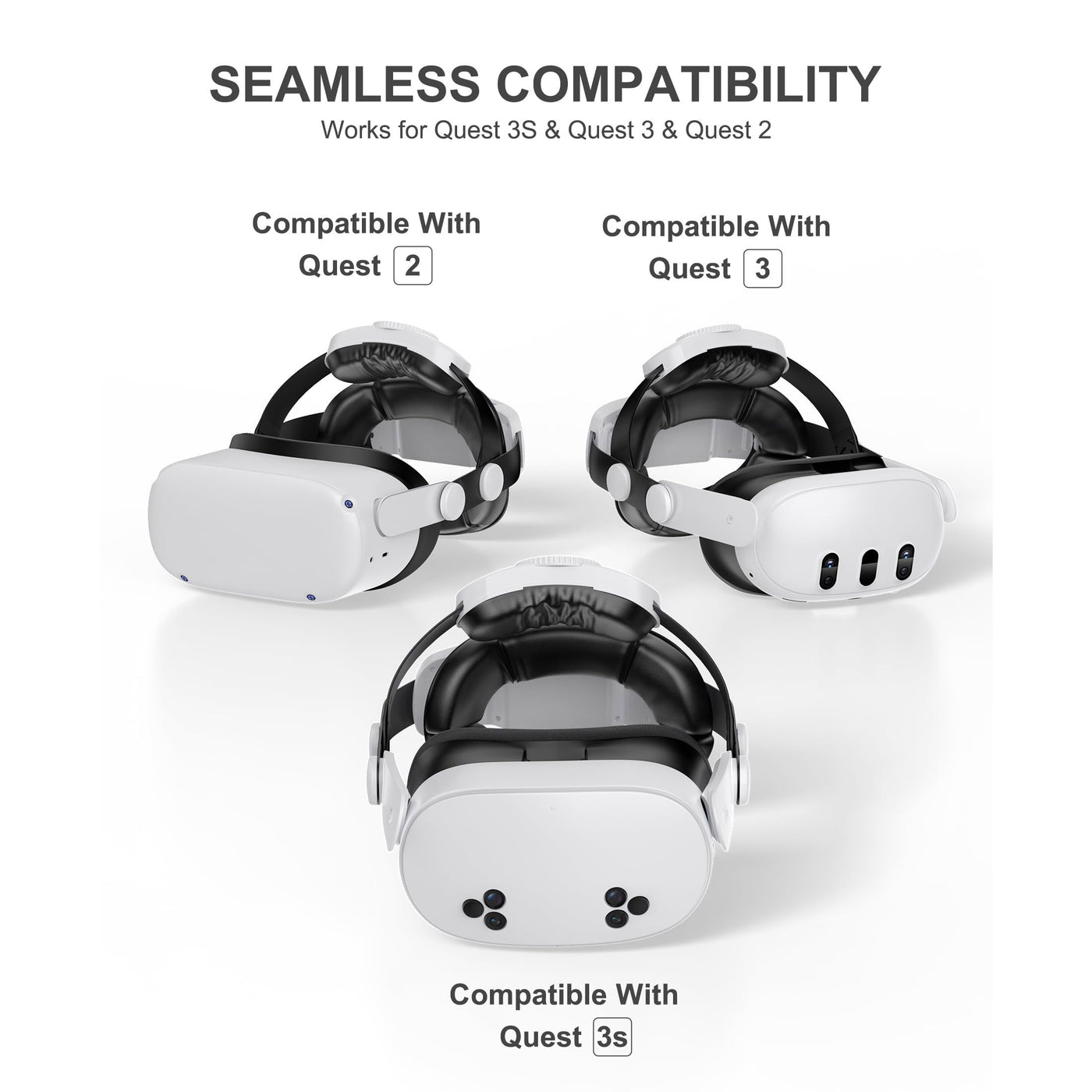 - 【Universal Fit for Meta Quest 3S/3/2 】Kawaye head strap compatible with Meta Quest 3/Quest 3S/Oculus Quest 2 vr headset, enjoy the same adjustable comfort across all. We Included:1× Comfort Head Strap | 1× for Quest 3S/3 Fasteners | 1× for Quest 2 Fasteners | 1× Cleaning Cloth | 24/7 Support.